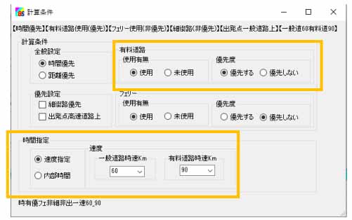 計算条件:【時間優先】 【有料道路使用(優先)】 【フェリー使用(非優先)】